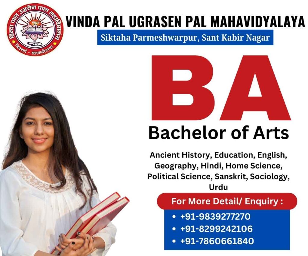 The Bachelor of Arts (B.A.) program is a versatile undergraduate degree that offers students the opportunity to explore a variety of subjects within the humanities and social sciences. Students can choose from disciplines such as History, Political Science, Sociology, Economics, English, Hindi, and more, allowing them to develop a broad understanding of human behavior, culture, and society. The program encourages critical thinking, analytical skills, and effective communication, preparing students for diverse career paths in education, public administration, journalism, law, social work, and civil services. The B.A. also provides a solid foundation for students who wish to pursue higher education, including master’s degrees and research opportunities in specialized fields.